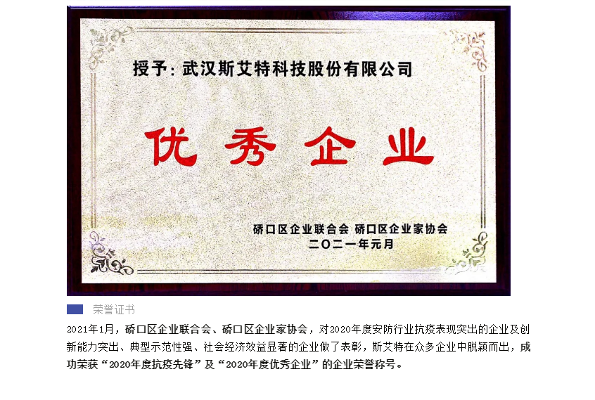 祝賀|斯艾特獲評2020年度“抗疫先鋒”及“優秀企業”榮譽稱號
