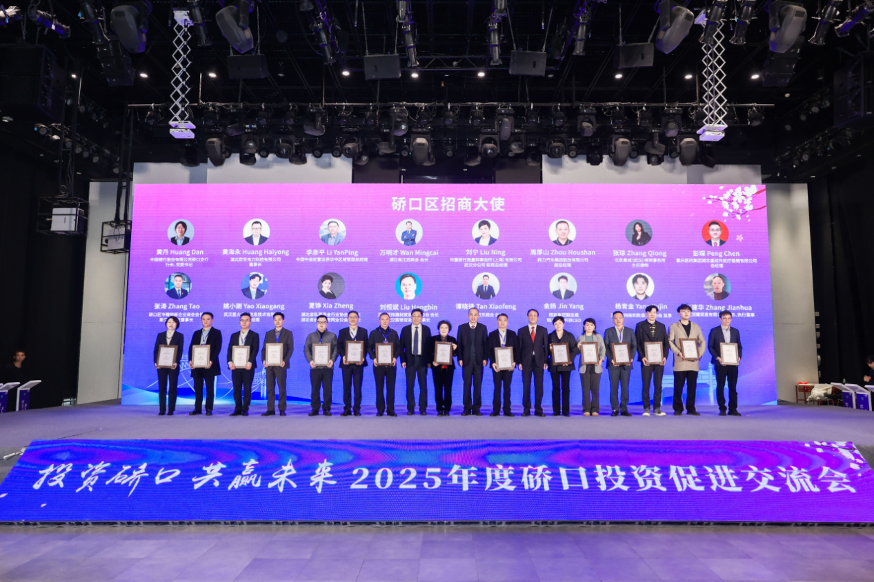 3月28日,以“投資硚口 共贏未來”為主題的“2025年度硚口區投資促進交流會”在硚口區云尚武漢國際時尚中心8樓召開,會議由區政府副區長孫嘉主持。會上,區委書記周耕、區長趙宏亮、區人大主任胡勇為武漢市硚口區專精特新企業商會會長、武漢斯艾特科技股份有限公司黨支部書記、董事長張濤等16名優秀企業家頒發“硚口區招商大使”證書。